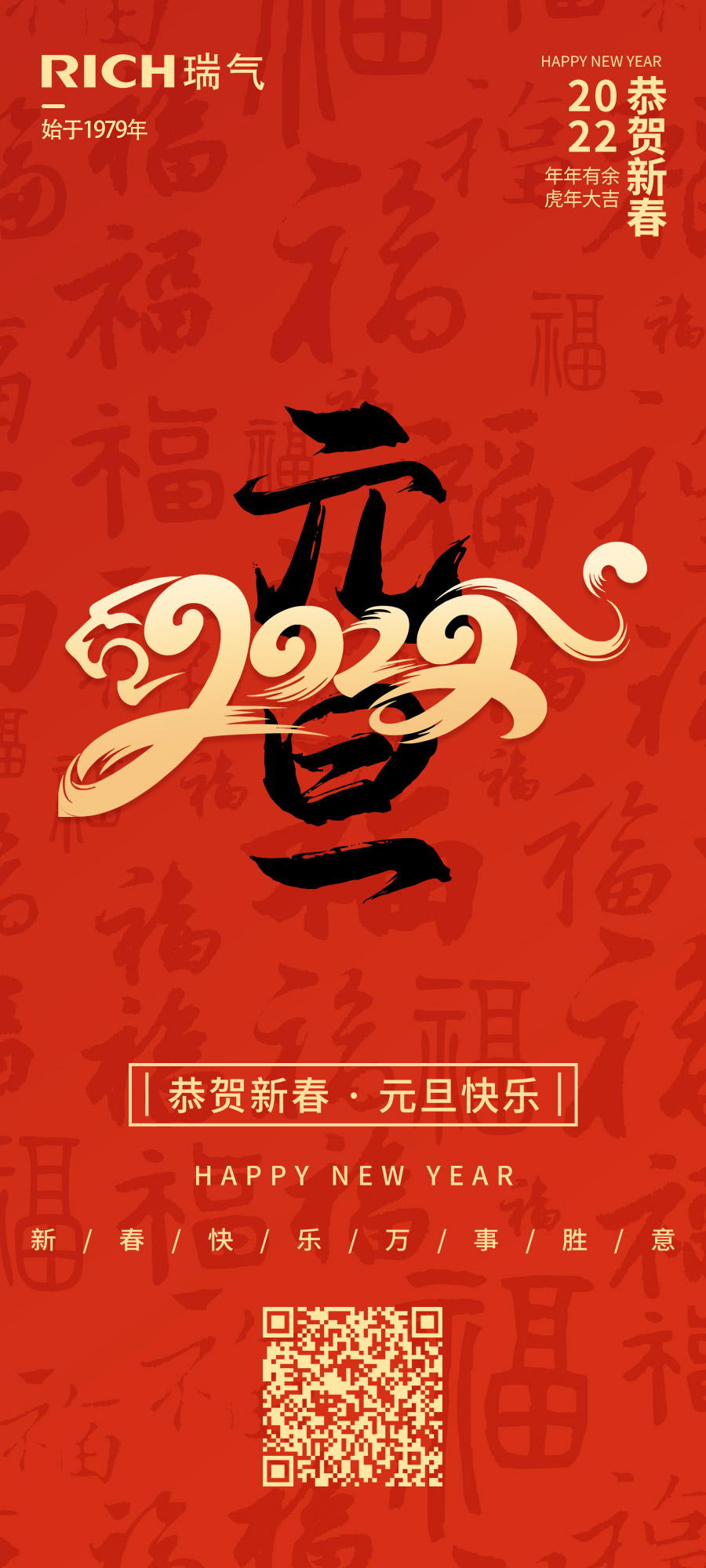 值此元旦佳節(jié)到來之際,瑞氣公司向全體員工及家屬,致以誠摯的節(jié)日問候,對(duì)所有關(guān)心和支持瑞氣事業(yè)的各級(jí)領(lǐng)導(dǎo)和社會(huì)各界朋友表示衷心的感謝,祝大家元旦快樂,心想事成,萬事如意!