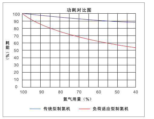 先進(jìn)的負(fù)荷適應(yīng)功能對變工況運行實現(xiàn)進(jìn)一步節(jié)能 針對用戶用氣不穩(wěn)定工況,根據(jù)分子篩的特性,在保證氧氣性能穩(wěn)定的情況下,有效減少單位時間內(nèi)富氮氣體排放次數(shù),減少原料空氣的消耗,減少生產(chǎn)成本,以達(dá)到負(fù)荷自動適應(yīng)的節(jié)能功能。