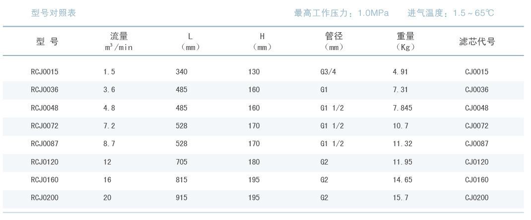 工作壓力:≤1.0MPa 進氣溫度:1.5~65℃